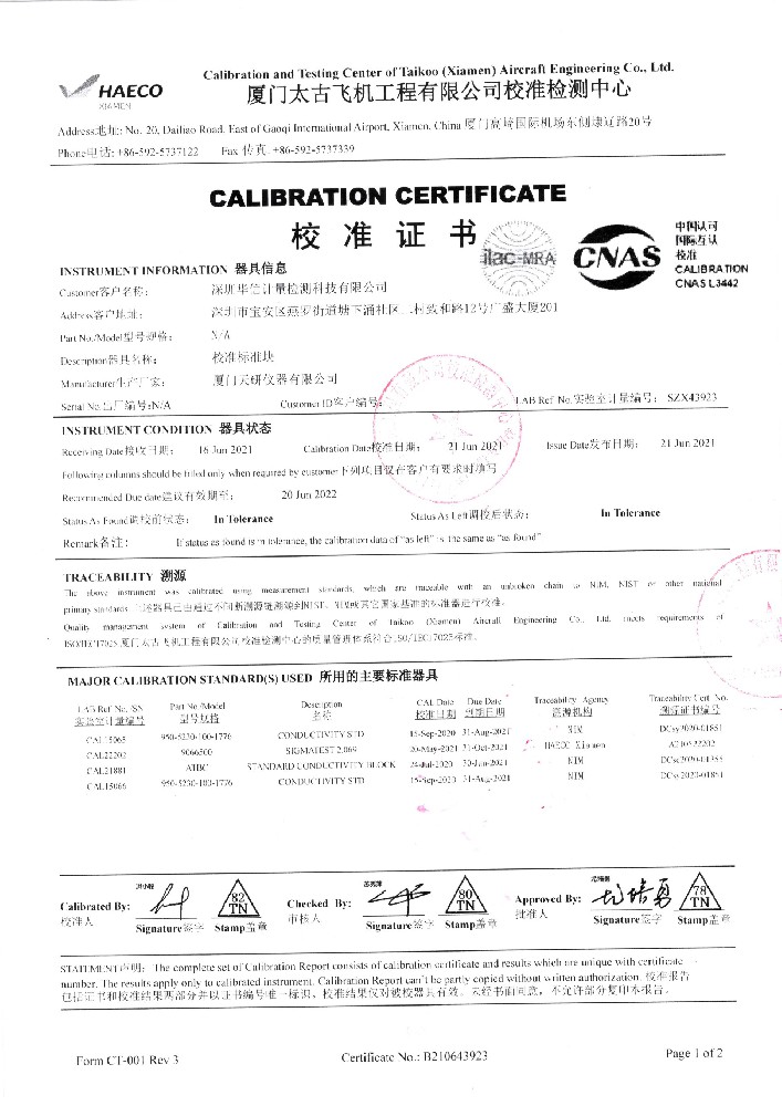 銅、鋁等金屬材料電導率值、電阻率值測量